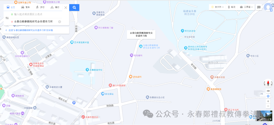 本会非遗传习所位于永春县桃城镇湖坝路155-1号。